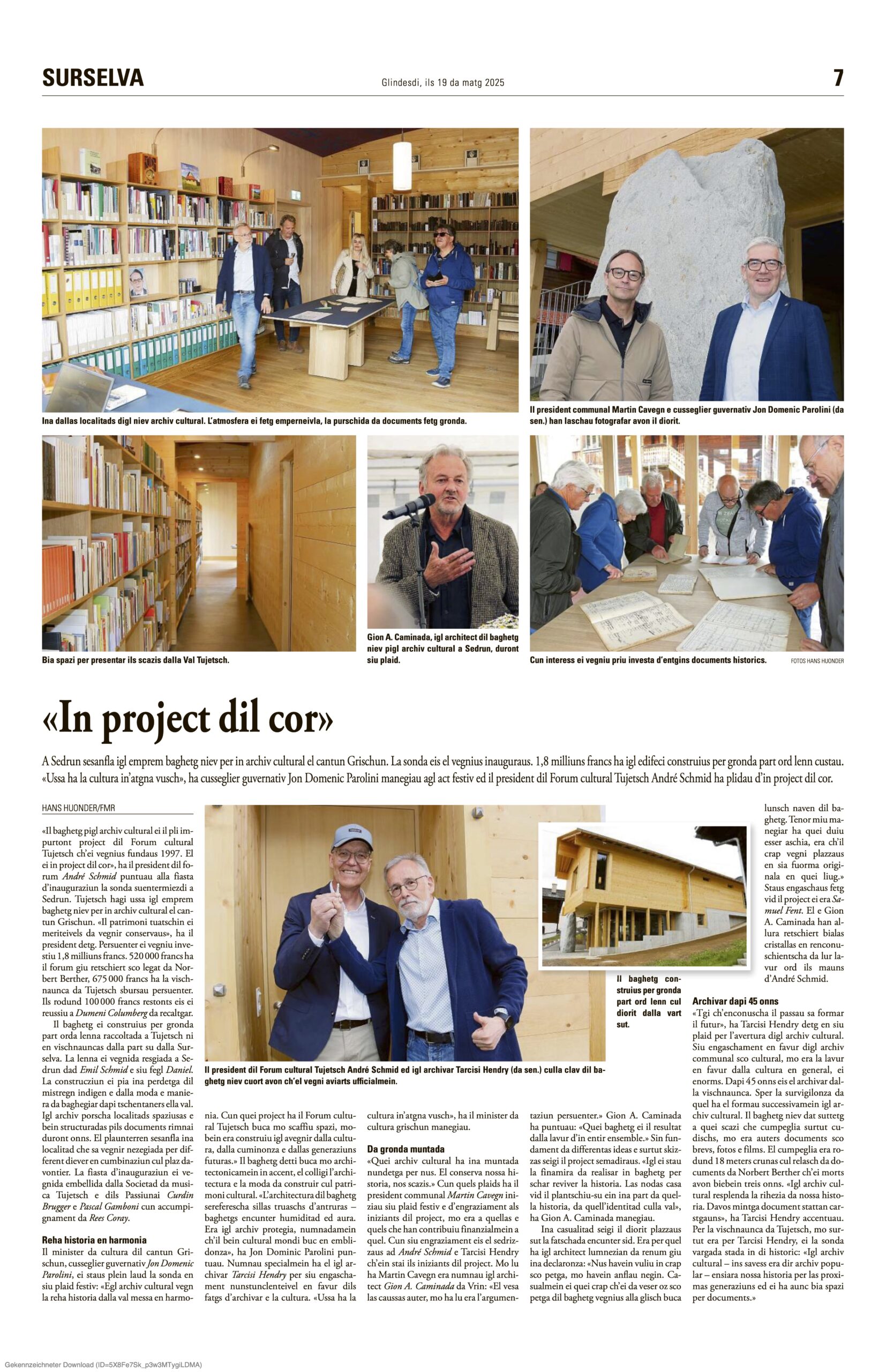 Presentaziun dil project „Archiv cultural Tujetsch“,