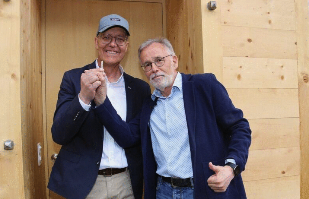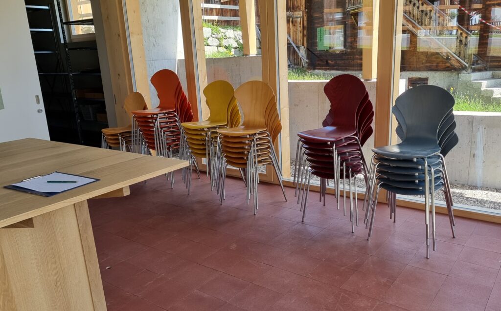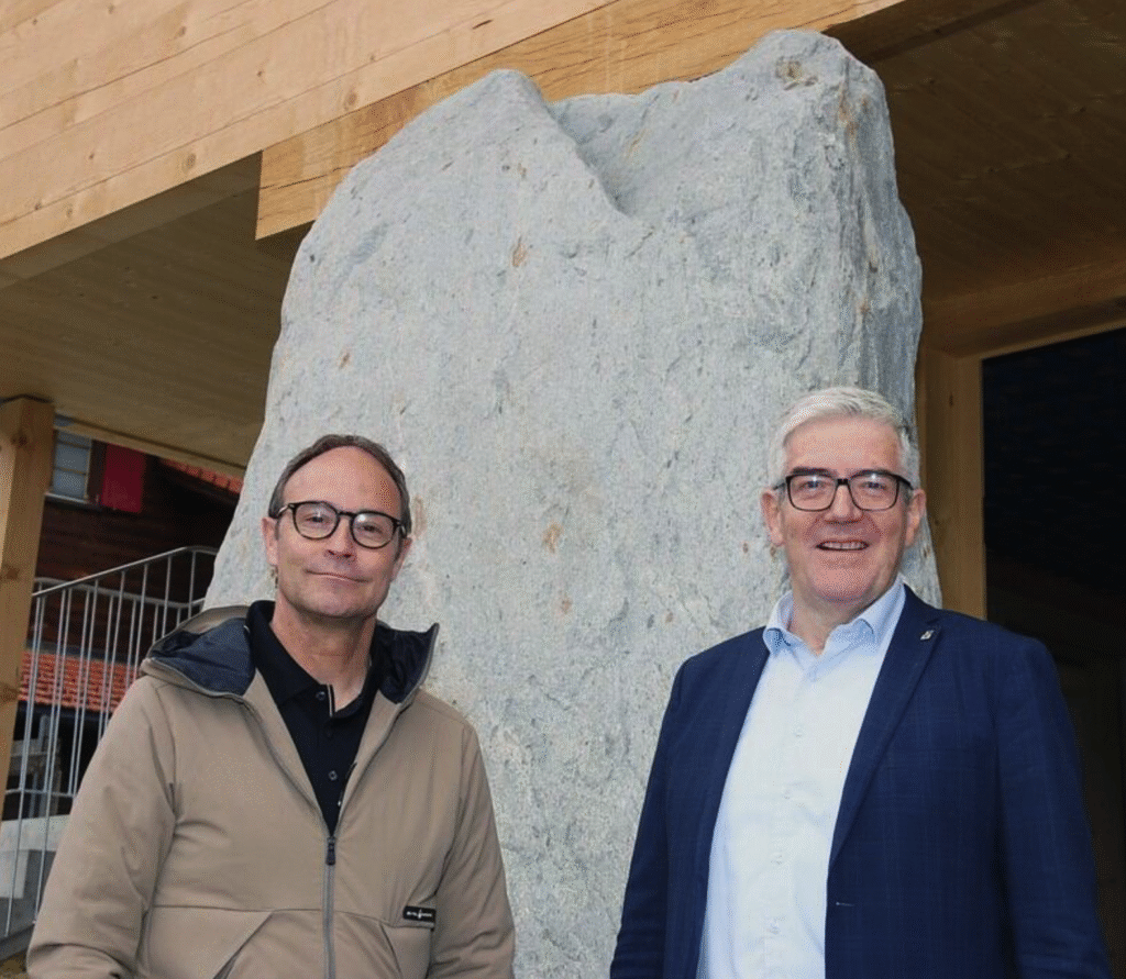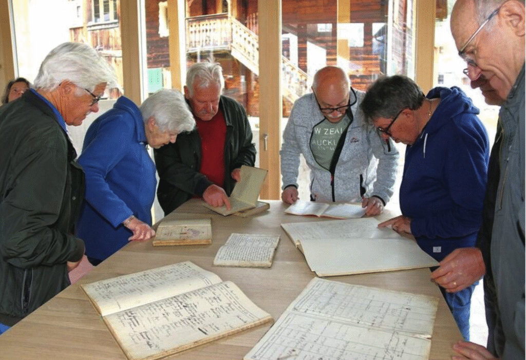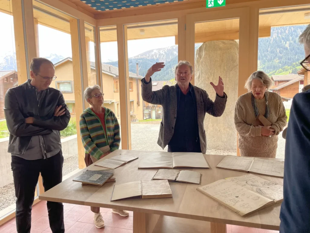 November 2023 – Resgia Schmid Sedrun. Tuts ein cuntents: André Schmid, President dil FcT, Tarcisi Hendry, archivar, Emil Schmid, resgiader, Gion A. Caminada, architect, Daniel Schmid, resgiader e gerau