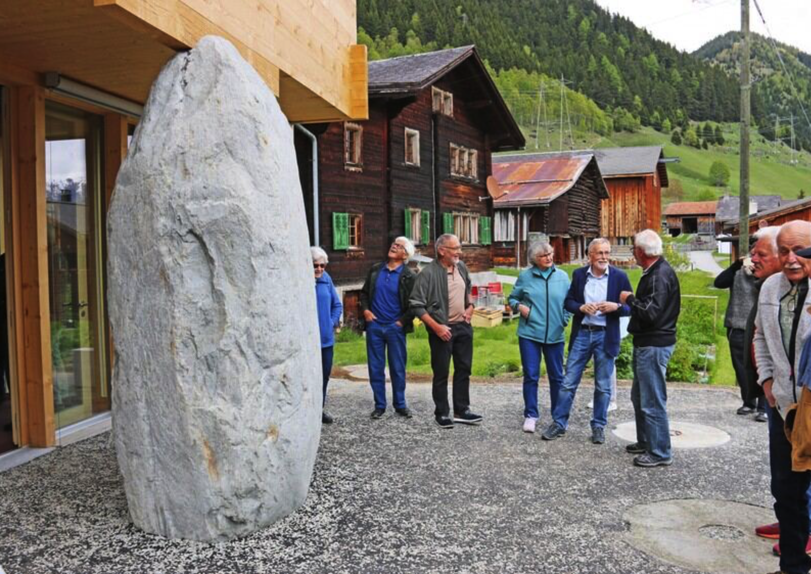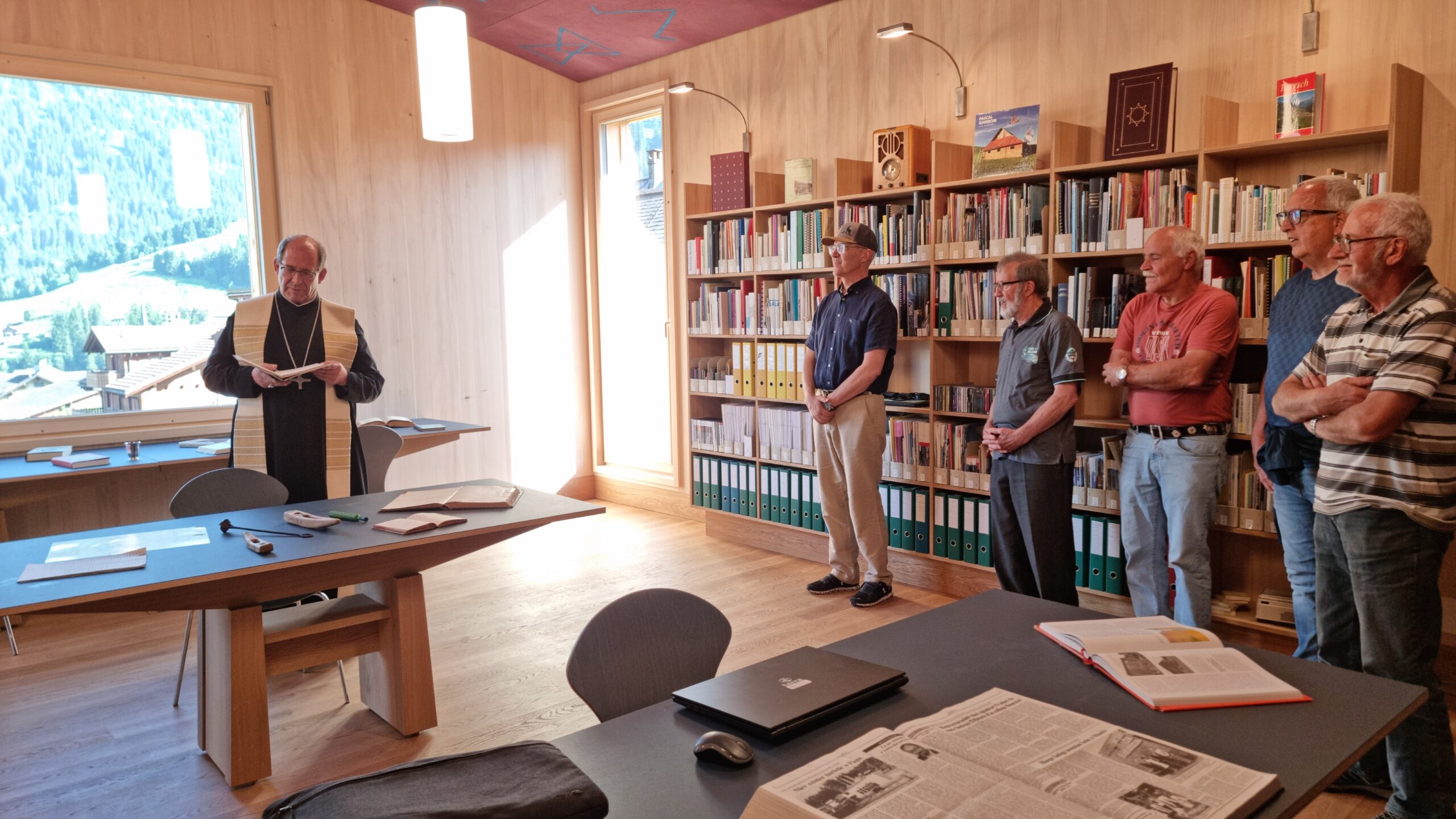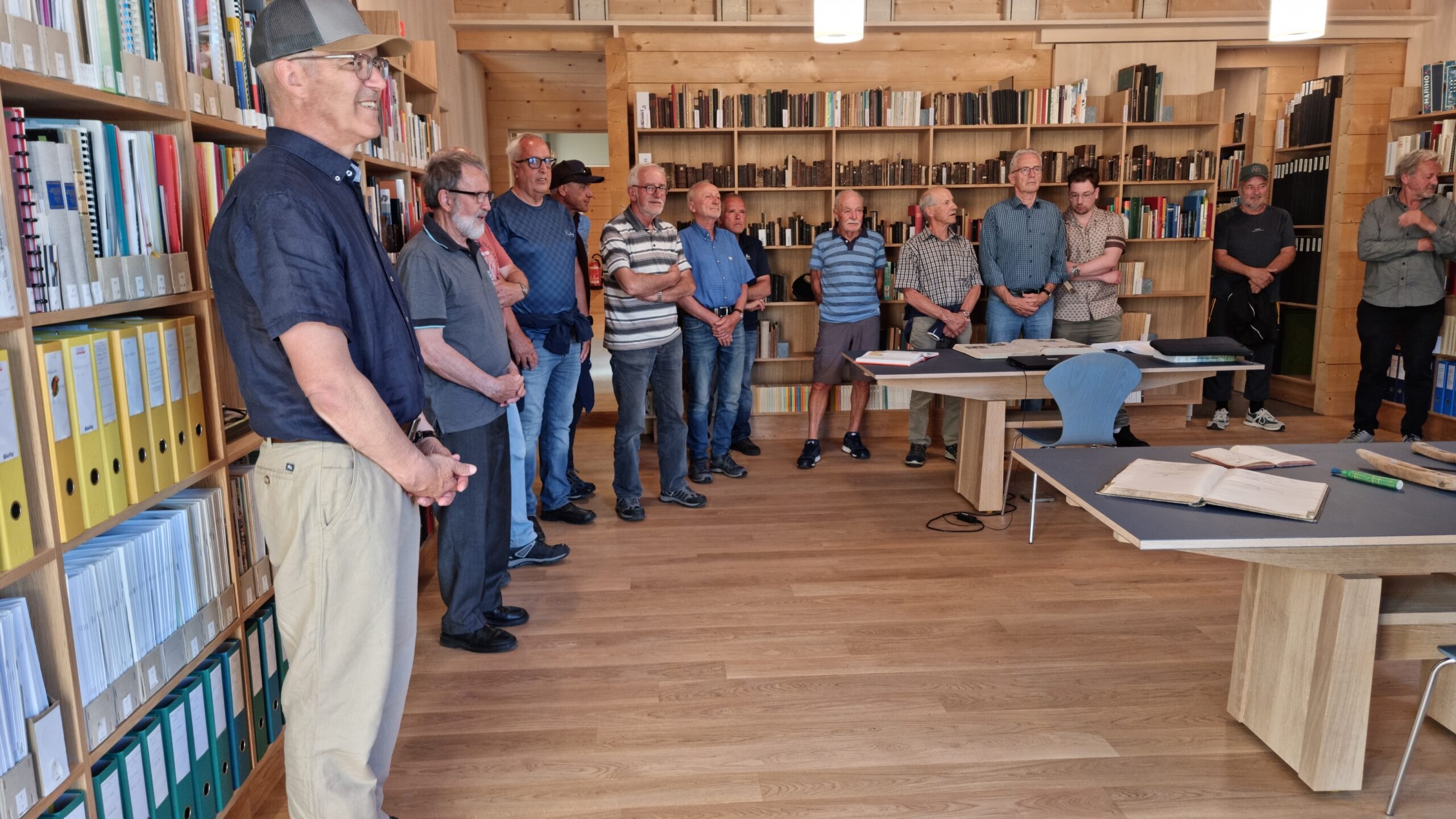November 2023 – Resgia Schmid Sedrun. Tuts ein cuntents: André Schmid, President dil FcT, Tarcisi Hendry, archivar, Emil Schmid, resgiader, Gion A. Caminada, architect, Daniel Schmid, resgiader e gerau