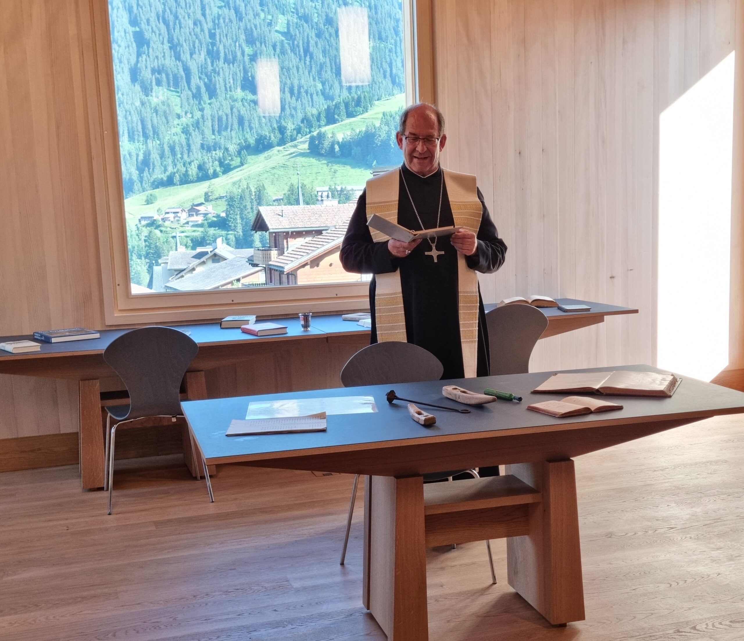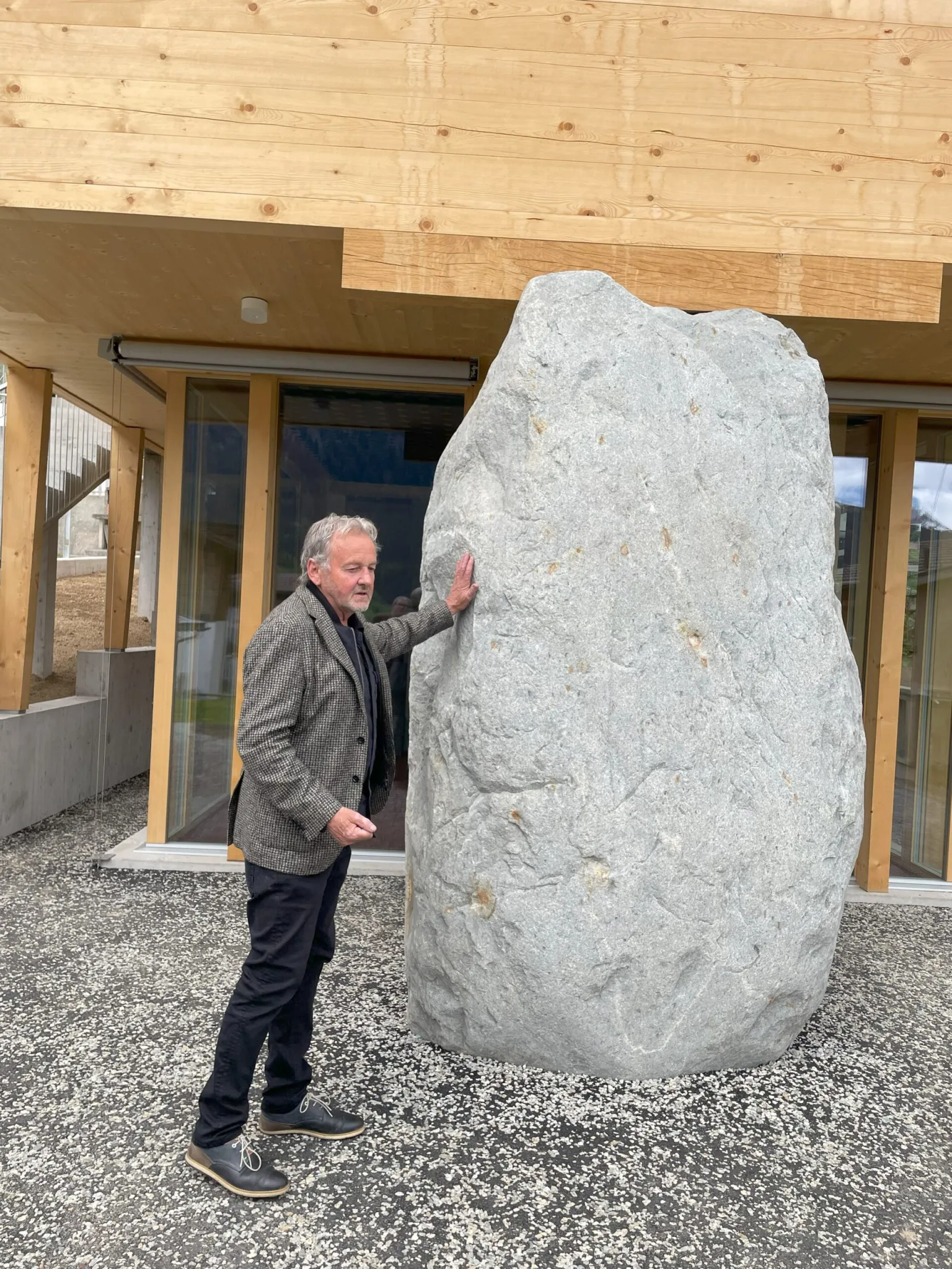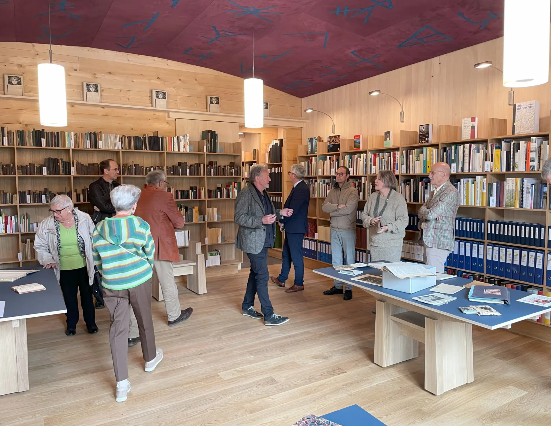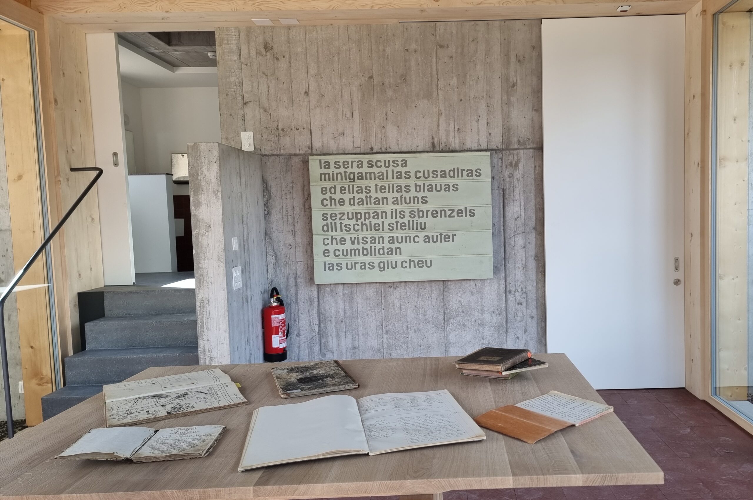 November 2023 – Resgia Schmid Sedrun. Tuts ein cuntents: André Schmid, President dil FcT, Tarcisi Hendry, archivar, Emil Schmid, resgiader, Gion A. Caminada, architect, Daniel Schmid, resgiader e gerau